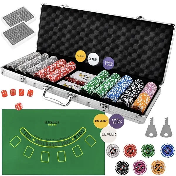 У набір входить 500 різнокольорових жетонів з номіналами та унікальним дизайном. Вони не тільки професійно виготовлені, але завдяки оптимальній вазі (13 г) дуже добре лягають у руку.